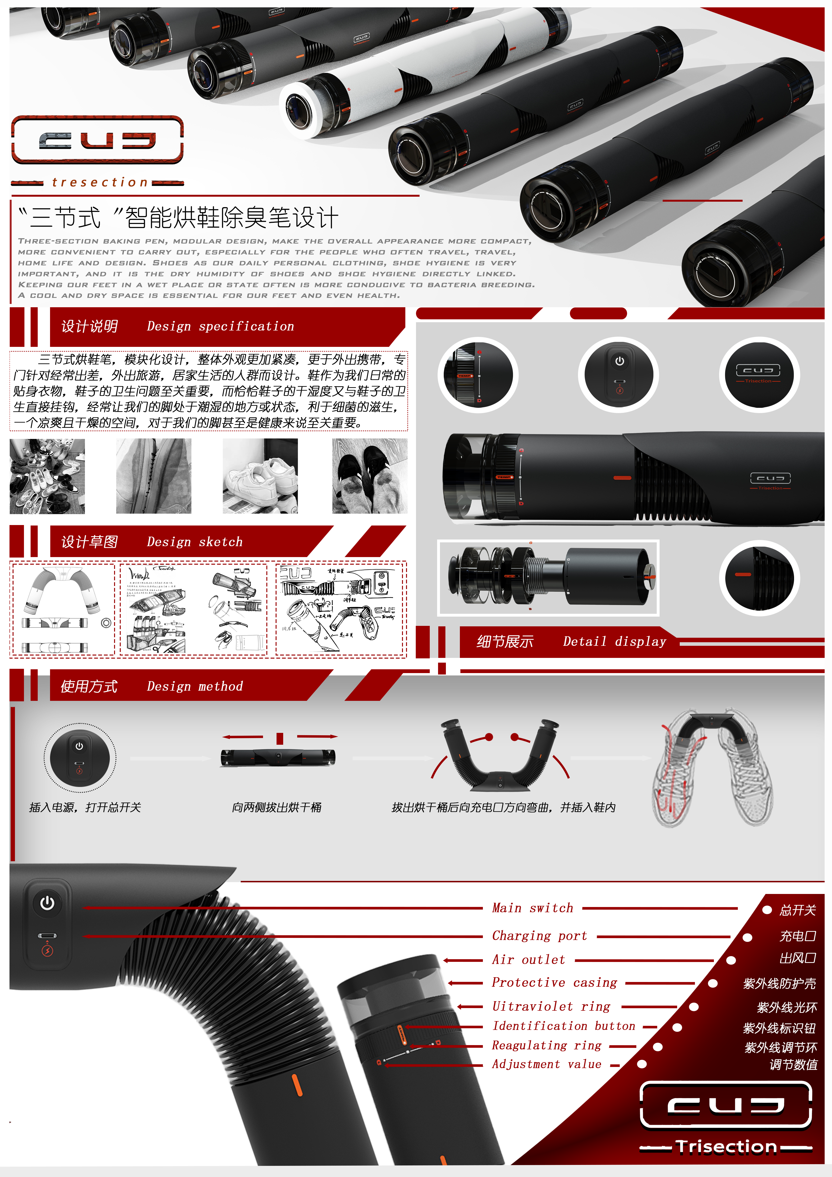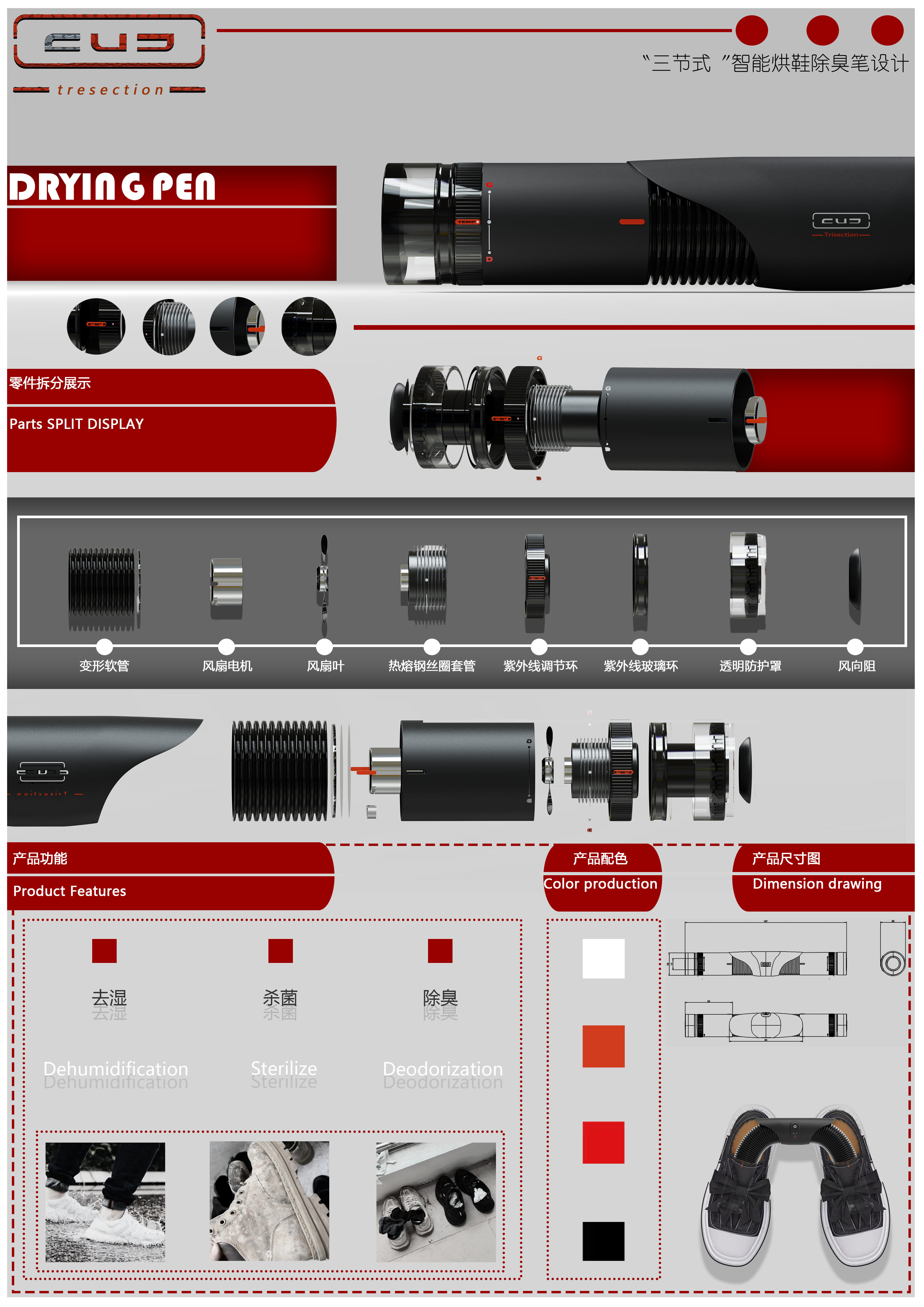 作品展播:“三节式”智能烘鞋除臭笔设计